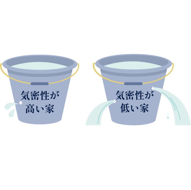 施工技術が低いと、気密性能は低くなり、穴の開いたバケツのようになってしまい冷暖房の効率も下がってしまうと言われます。