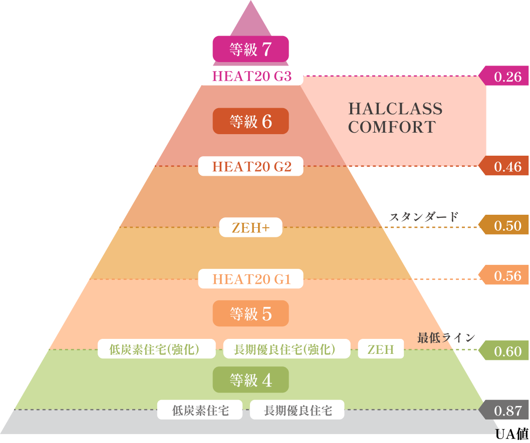 建主様のご要望に応じて断熱性能等級7・HEAT20 G3グレードも対応可能となっています。