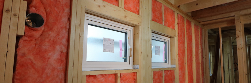 しかしながら外張り断熱工法を採用したまま耐震性を犠牲にすることなくこれ以上断熱性を上げることができなくなったのです。在来工法で外張り断熱工法を採用するメリットの1つに気密性能を確保しやすいという点があったのですが、ツーバイシックス工法を採用することにより気密性を高め、断熱性も充填断熱工法へと戻すことにより厚みを確保することになったのです。
