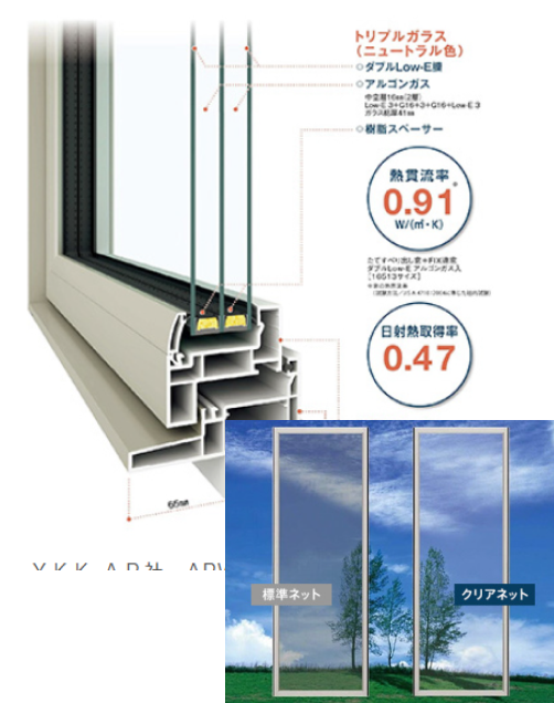 ガラス部はトリプルガラス(防火扉の場合はペアガラス)となっています - トリプルガラスには防犯合わせガラスが標準で組み込まれ、