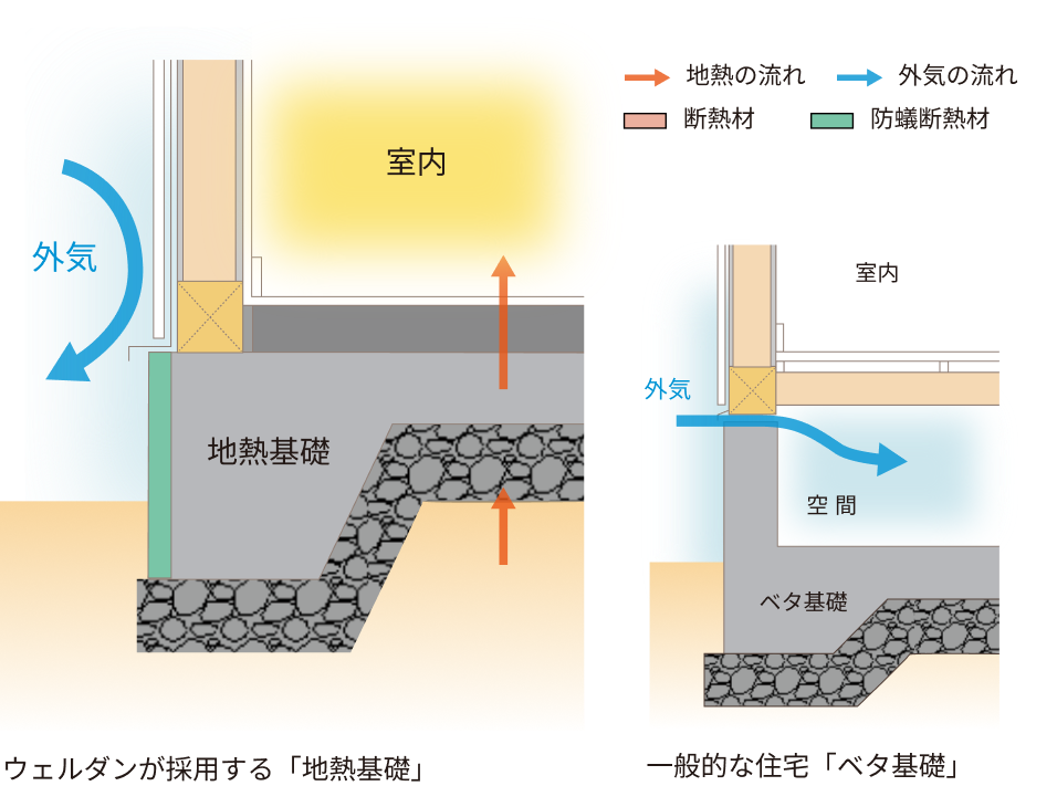 理想的な暖房方式である地熱基礎と蓄熱式床暖房を組み合わせた当社オリジナルの床暖房「ウェルダン」をご紹介します。