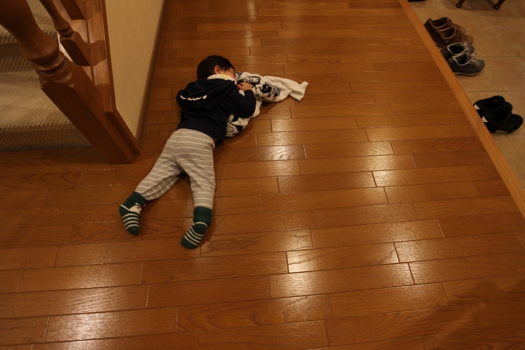 なんと玄関先で眠ってしまいました!(-_-)zzz