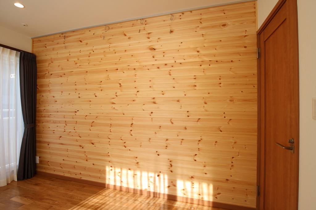 1Fと2Fの寝室には一部パイン材を使用しました。