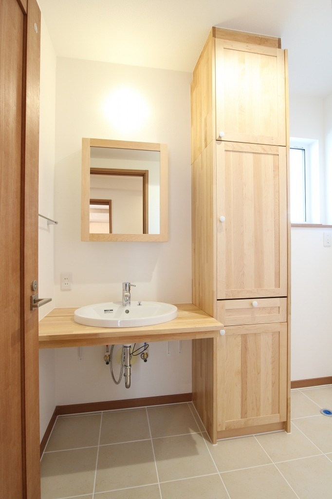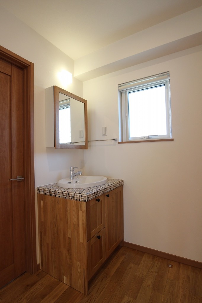 2Fも同じく無垢の木の洗面台シリーズを採用し、無垢のオーク材を使用した洗面台となりました。