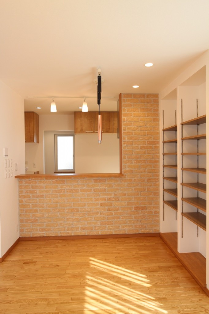 一部分にアクセントとしてレンガを貼ることによって空間全体の雰囲気を変えることができます。