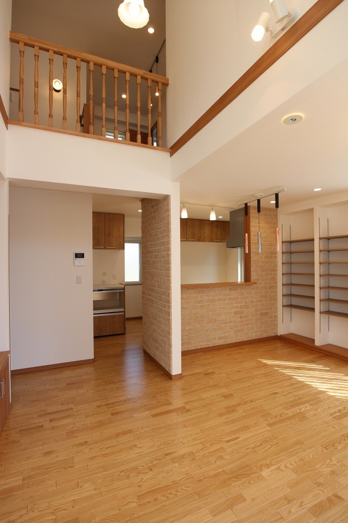 お施主様のご要望により、2Fにいても1Fの生活の様子を感じることができるよう、吹き抜け部分を設けました。
