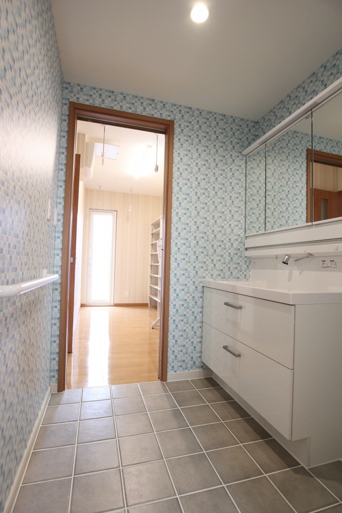 キッチンの奥はパントリー兼洗濯等の作業スペース、洗面室、浴室へとつながっています。
