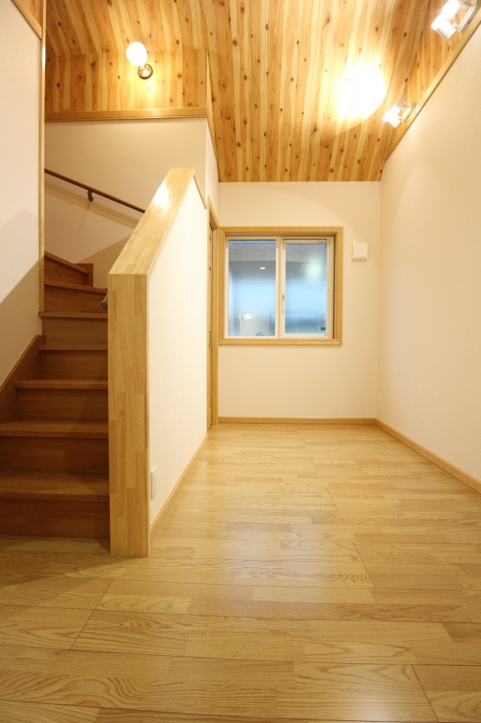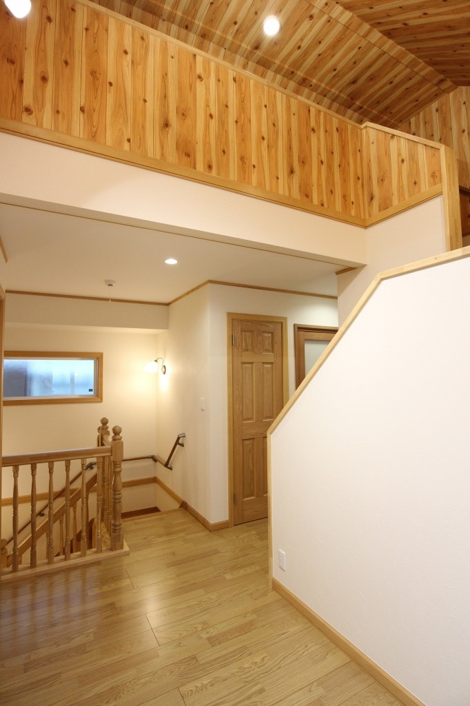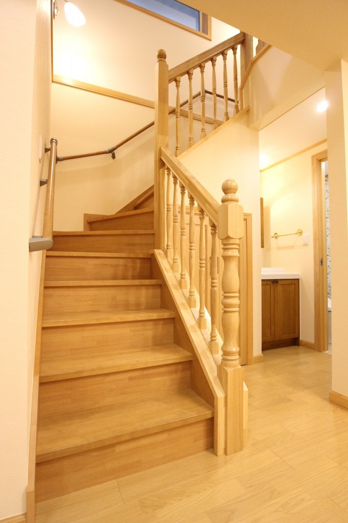 木の温もりの感じられるウッディーな階段室となりました。