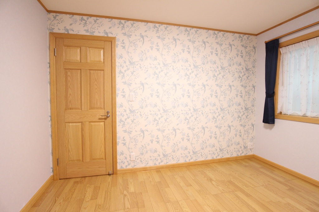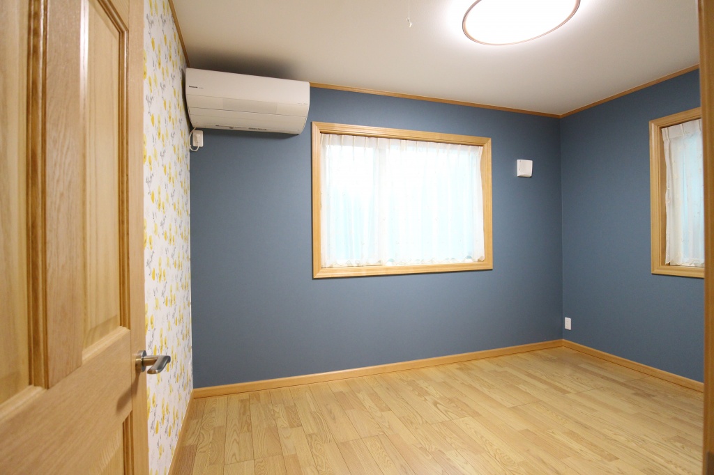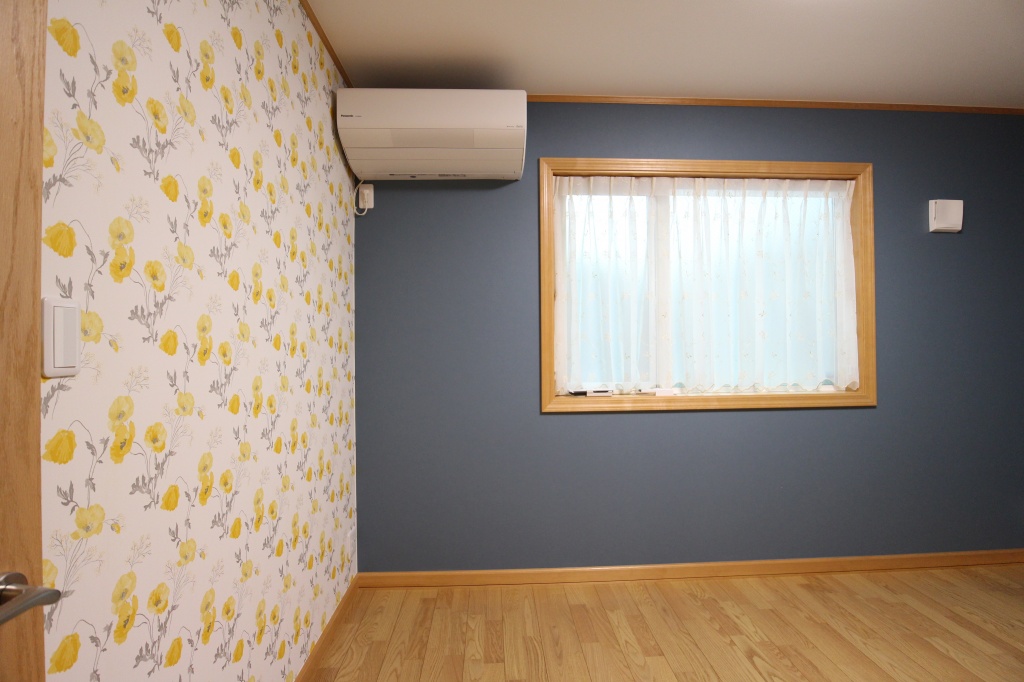 子供室はメインをリリカラのブルーのクロスを貼り、