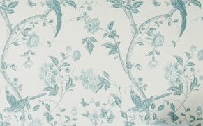 一面にひろがる花鳥柄に上品なホワイトと鮮やかなブルーが魅力的なデザインです。
