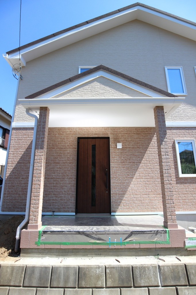1F部分の外壁には、ナチュラルレンガのオレンジ色を採用しました。