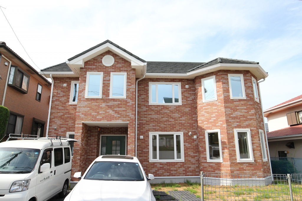 同じくジョージアンスタイルのこのお家は前面がレンガ調のサイディングとなっています。