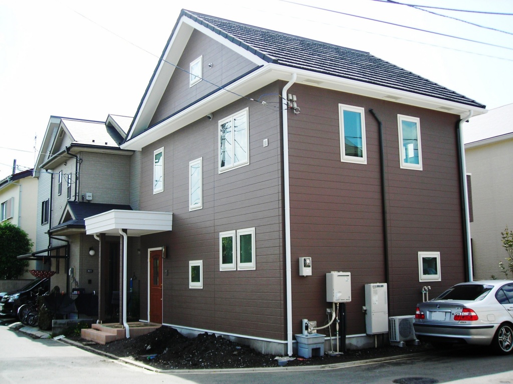 ブラウン色に白のサッシがアクセントとなっています。