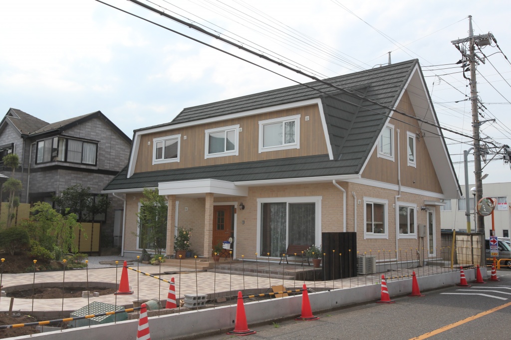 屋根は濃いブラウンで全体を引き締め、トータルバランスがとてもよいカラーコーディネートとなりました。
