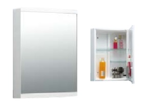 化粧鏡はLIXIL社の収納付きのミラーキャビネットを採用致しました。