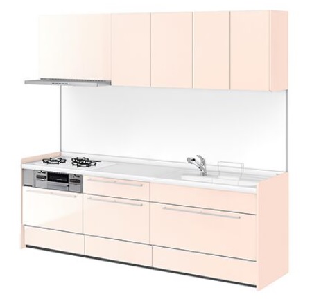 キッチンはLIXIL社のシステムキッチンALESTAを採用致しました。扉色は優しい雰囲気のミストピンクを選びました。