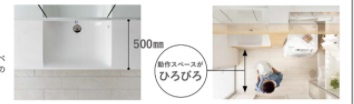 カウンターも奥行50㎝とコンパクトなので、動作スペースを大きく広げる事が出来ます。