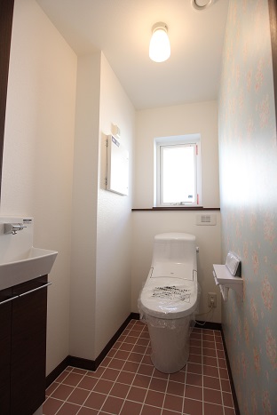 こちらの1階のトイレ室には洗面台を設置致しました。広いトイレ室ならではですね。