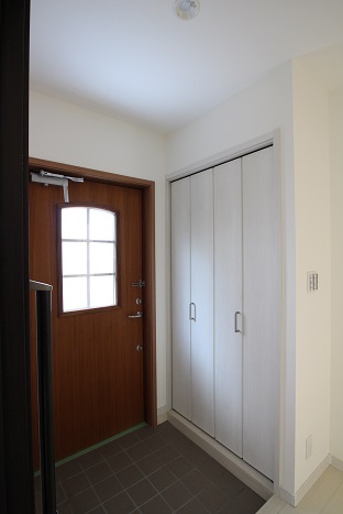 ドアにガラスが付いていて、見た目にとてもおしゃれで、かつ内側の玄関は
