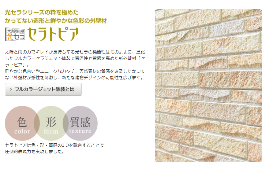 外壁はKMEW社のネオロック 光セラ、セラトピアのファサードストーン16の