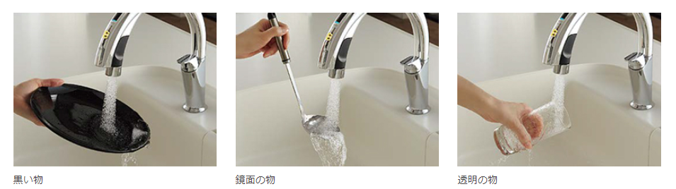 従来のセンサーが苦手だった、黒い物、鏡面の物、透明の物でも、感知精度が向上しました。