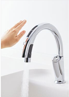 今回はハンズフリー水栓を採用しました。触れないで操作出来るのは、衛生的でとても便利です。