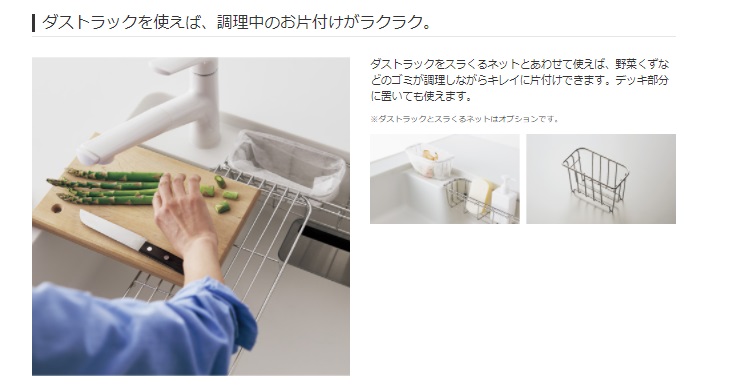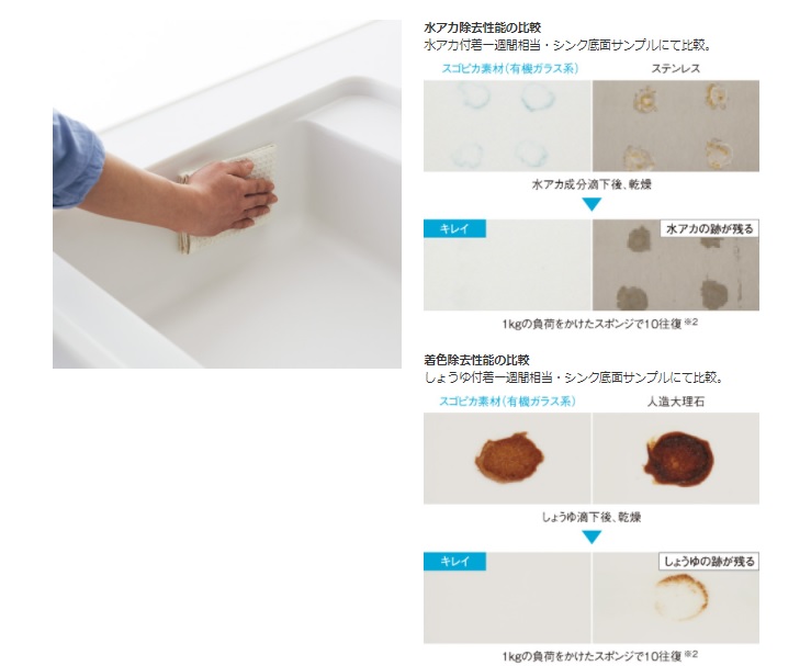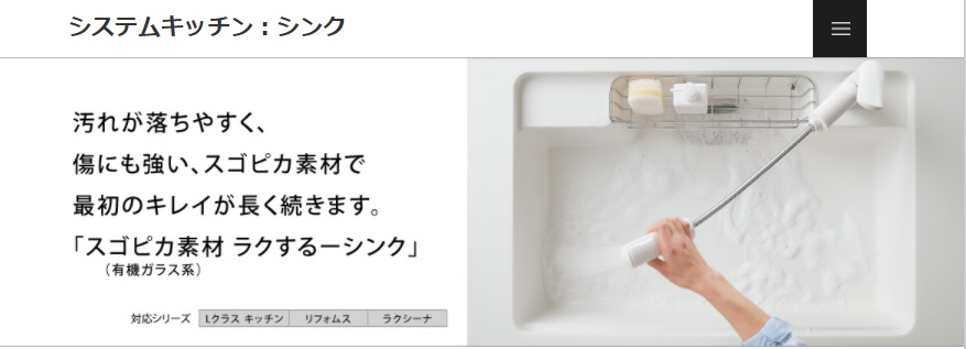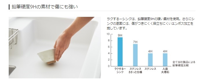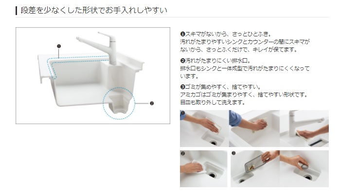 シンクは汚れが落ちやすく、傷にも強い新素材で、最初のキレイが長く続きます。