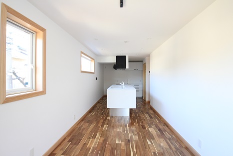 2階はEIDAI社の銘樹プレミアムク、アカシアのオイルフィニッシュを採用しました。
