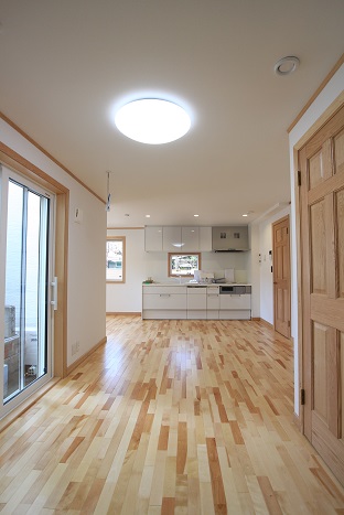 フローリングは1階はボード社のパスポートゆかだん直貼りタイプのサクラを採用致しました。