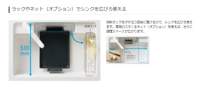 洗剤ラックをタテヨコ自由に置けるので、その時々でシンクを有効に