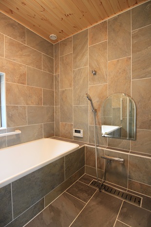 床タイルはLIXIL社のバサーティル。ナチュラルな色の木目調タイルをず