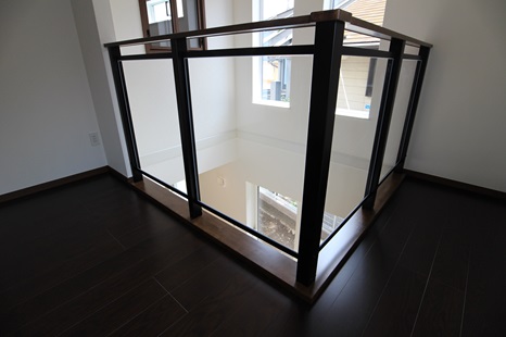 2階吹き抜け部の手すりは、南海プライウッド社のルミスト。