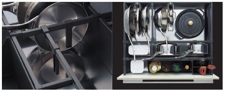 コンロ下の収納は、一目で見つかる、楽に取り出せる、スムーズにしまえる