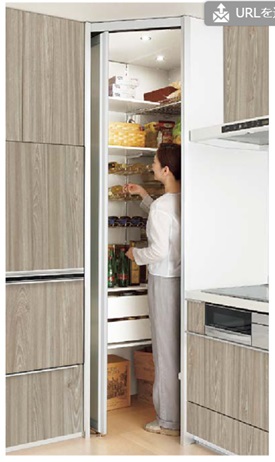 キッチンの収納はLIXIL社のリシェルシリーズから、キッチンクローゼットと