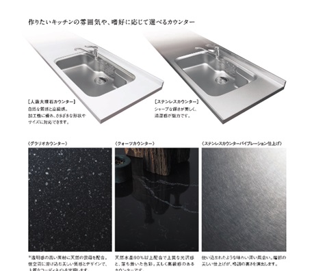 カウンターはスゴピカ素材のグラリオカウンター。