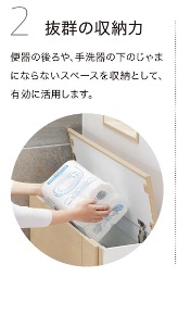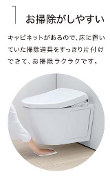 それに加え、便器が浮いているから便器下もサッとひとふき、お掃除が簡単です。