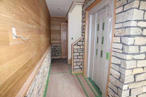 建築中に急遽玄関ホールにもコッツを貼ることとなりました。