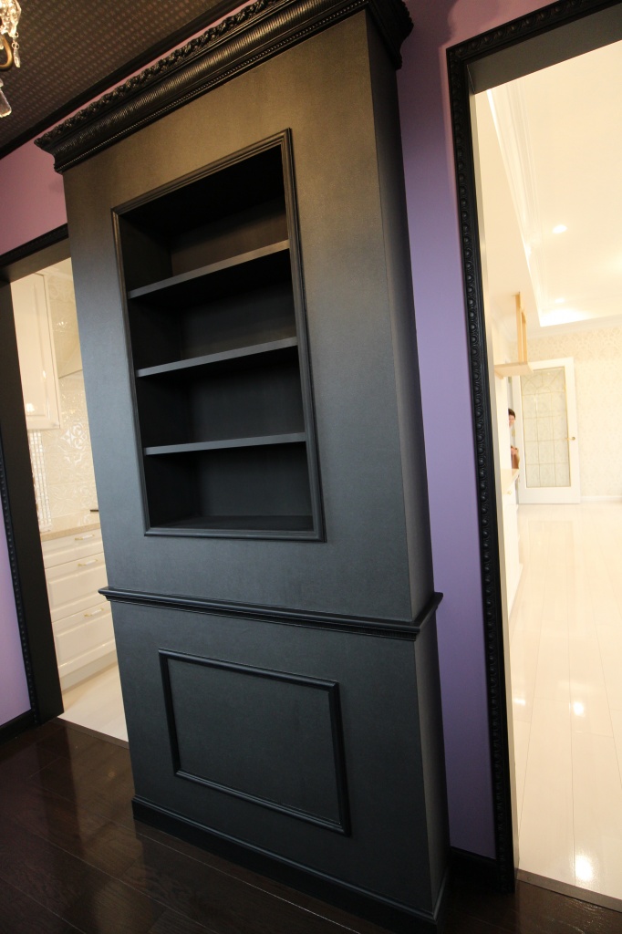 がご要望で、今回はこの「黒い家具」を造作棚で作成しました