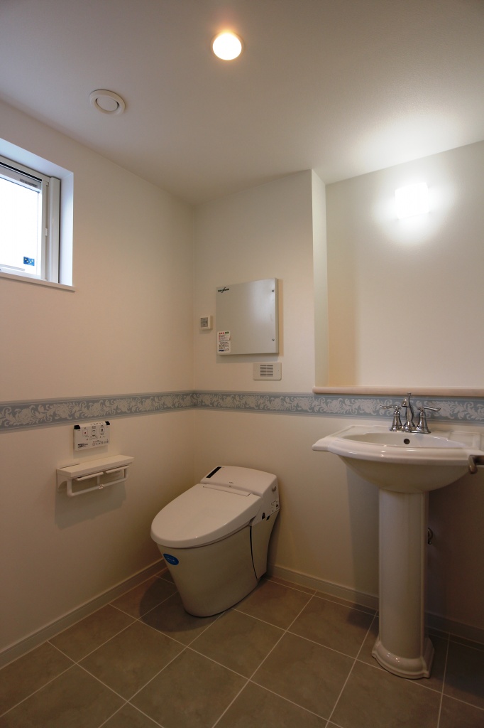 2階のトイレは洗面と一つの空間とし