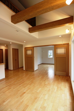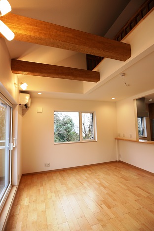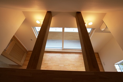 2階の子世帯には、LDKと小屋裏をつなぐ吹き抜けがあります