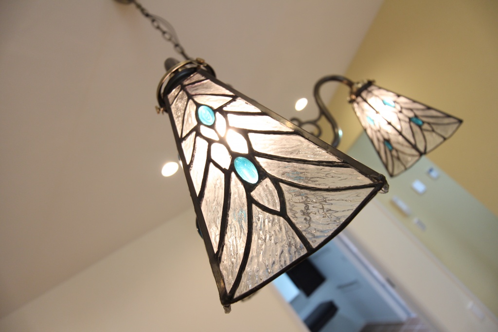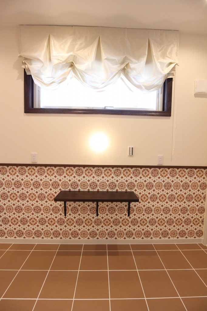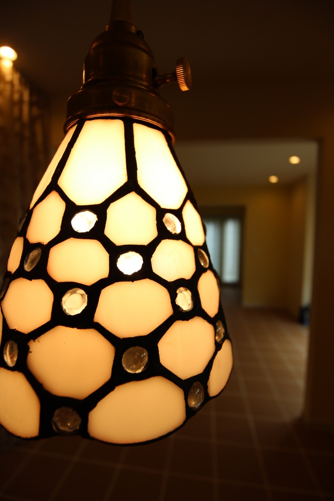 お施主様ご自身で用意された照明も、とても綺麗でタイルのお部屋によく映えています。