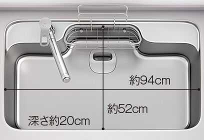 幅約94cm、奥行き約52cm、深さ約20㎝のとても幅広となっており、