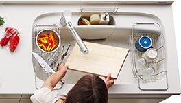 洗いやすさだけでなく、調理中の仮置きや水切りなど、さまざまな役割をこなすスペースとして活躍します。