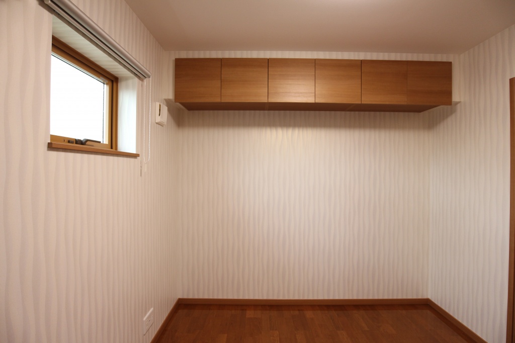 書斎、納戸そして洗面室にはLIXILの収納ヴィータスの吊戸棚を設置しました。