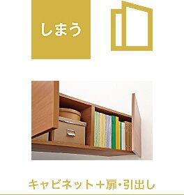 しまう収納でキャビネット+引き出し・扉