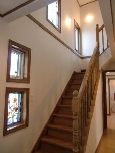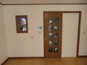 TOP 施工事例 東京都東村山市I邸 東京都東村山市I邸 所在地 東京都東村山市 LDKには10枚のステンドグラスを埋め込んだ特注のスライドドア横には、壁にステンドグラスを埋め込んでみました。 お施主様が作成したステンドグラスを、トリプルガラスの樹脂窓の窓サイズを特注して内側にぴったり収まるように収めてみました。クリ棒手摺と吹抜けが隣接して開放的な玄関ホールにステンドグラスが栄えますね 外壁の色をシルバーにして、ウォルナット調の玄関ドアにして、清潔感ある外観になりました。地盤を少し掘下げ駐車スペース2台分を確保できました