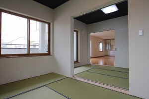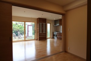 お施主様は、緑豊かなお庭のある300㎡の敷地に建つ築57年の日本家屋に「同居型」の二世帯住宅として住んでいました。今回の計画は、お庭を残しながら、延べ床面積が70坪にもなる二世帯住宅の建替えです。建替え前は、夏の暑さや冬の寒さもさる事ながら風で「建物がきしむ音」や、外の木々が「揺れる音」に悩まされていました。二世帯住宅で問題になる、お互いの生活音にも気を使っていたため今回の建替えでは、お互いのプライバシーを一番守れる「完全分離型」の二世帯住宅の計画となりました。今回の計画にあたり、お施主様が当社をお知りになったのは建替えにあたって建築会社を探している所お施主様の知り合いの不動産会社の担当の方が、以前当社と取引があり「家を建てるならウェルダンが良いよ!」と紹介でお越し頂いたのが縁です。他にも鉄骨系の大手2社とプランを進めていらっしゃいましたが1年間じっくりと打合せしながら、「夏の体験」・「冬の体験」・「防音性の体験」をして頂き、最終的に当社を選んで頂きました。特に「防音性の体験」では、当社の住宅展示場の向かいに「ララポート立飛」の駐車場の出入り口があるため、出入りの音が一日中鳴っている中、お施主様が「打ち合わせ中まったく気にならなかった」と驚いていました。