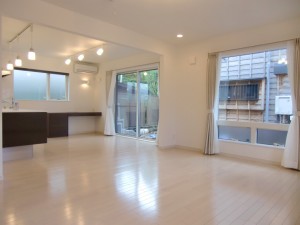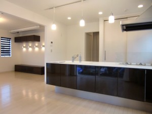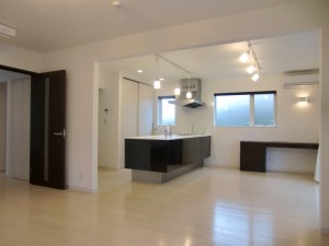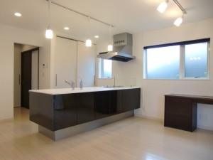 国立市のT邸は、国立駅から徒歩圏内の大型分譲地の中にある1棟で、当社の社員のかつての同級生の家です。同じ分譲地には、T様のお兄さんの家も同時期にウェルダンにて建築させていただきました。 お施主様は友人が多く、たくさんの人が来られるため、狭く感じさせないオープンな間取りで、デザインはシンプルモダンスタイルで生活感の無い空間を希望されました。 1階は南に面して11畳のリビングと11畳のDKがオープンな空間でつながっています。 お引渡後に実際に何度か訪問しておりますが、リビングでくつろぐ友人やDKで食事を取る友人、DKに面したウッドデッキでお話をする友人と15人程度集まってもまったく狭く感じず、各々が好きなシチュエーションで楽しんでおりました。 人が集まった折に出来るだけ生活感を無くしたいとの希望から、DKでは食器棚や家電収納は見せないで、扉の中に収納しました。キッチンについては、まだ我々がショールームでしか見た事の無かった横並びの三口ガスコンロを採用。東京ガスの方もガスの開栓に来て実際にお客様の家で使われているのを初めて見たと驚いていました。洗濯機も洗面室には置かずに、洗面室~キッチン間の廊下に収納しました。 製品は、お施主様がシンプルなデザインのパナソニック好きという事もあり、キッチン、壁面収納、建材、照明等パナソニック製品で揃えました。お施主様の好みに合わせてメーカー、製品を選べるのも注文住宅ならではですね。 2階は寝室以外にもご主人専用の書斎や小屋裏部屋等、プライベートな空間とはっきり分かれています。 床暖房好きのお施主様の希望で、今回は1階に加えて2階全面にもパネル式の温水床暖房を採用しました。 オープンな空間だと通常は夏暑く冬寒いので、実際には季節を選ばないとお客様を呼べないものですが、季節を問わず人が集まれる快適な家が実現できるのは、ウェルダンの住宅ならではと、お施主様にも大変喜んで頂きました。